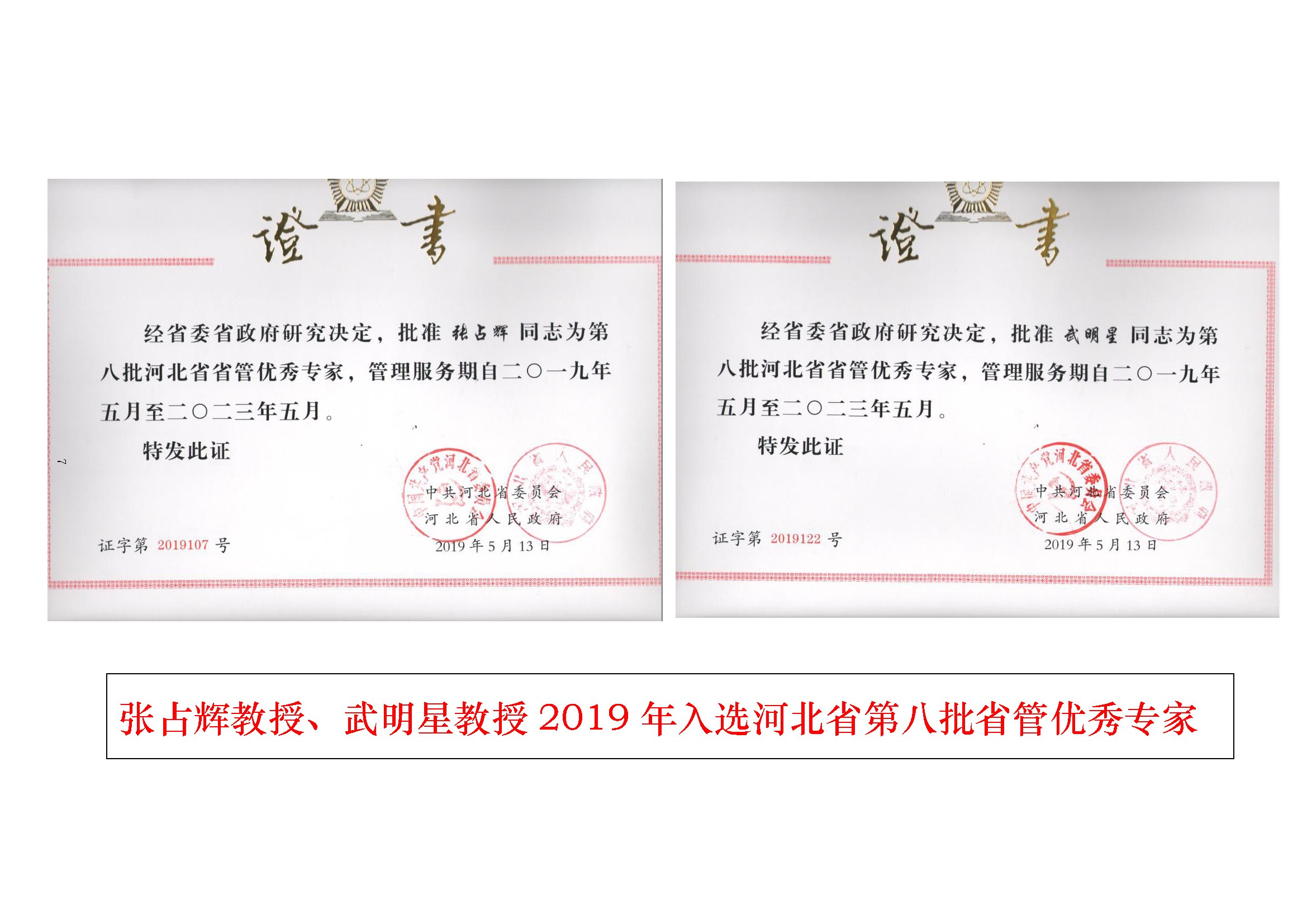 pg游戏官网张占辉教授、武明星教授入选河北省第八批省管优秀专家